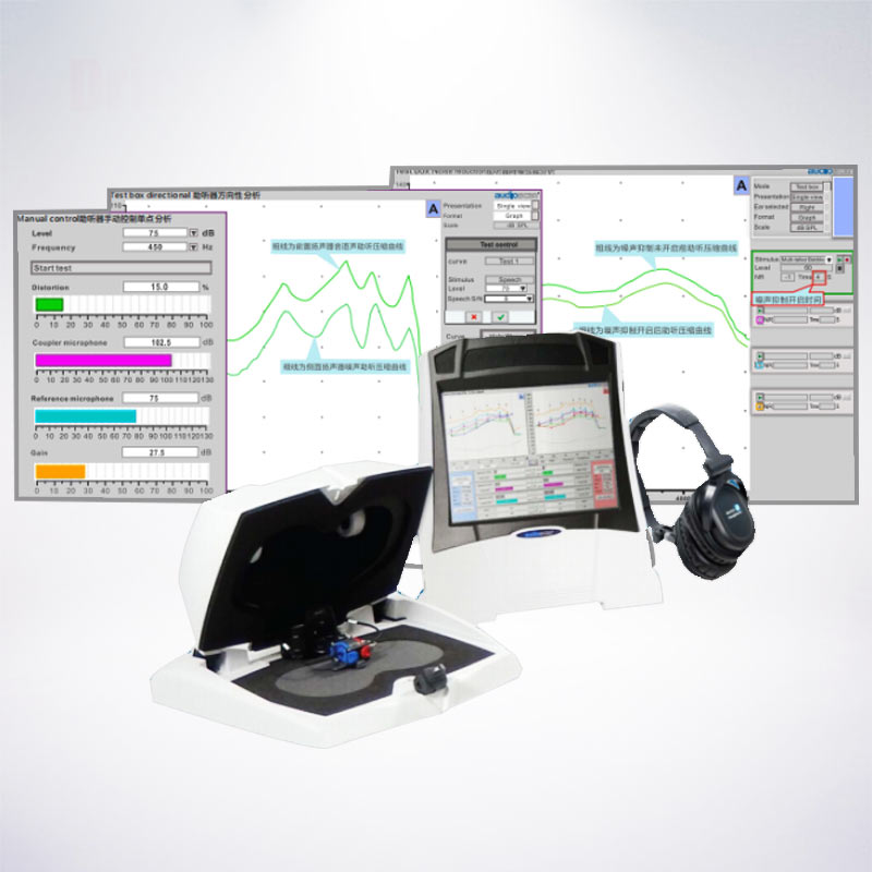 一、雙側(cè)助聽器同時驗證:1、Speechmap”吉語頻譜圖清晰可視目標(biāo)值2、調(diào)試過程看得見,放大的聲音可同步監(jiān)聽3、助聽...